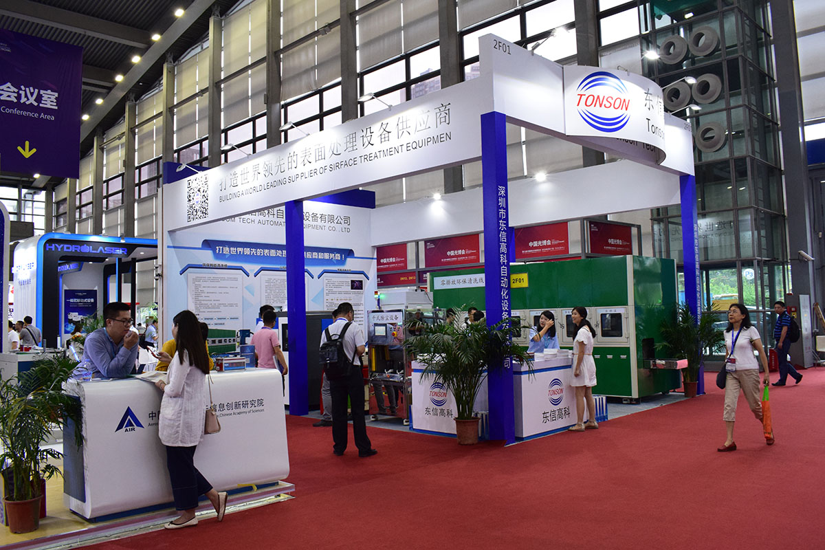 這就是我們的展位,展位號是2展館,2F01,此次展會我們主要展出了我們公司最新的幾款產品,環保超聲波清洗線,干式除塵設備,真空等離子清洗機,還有大氣等離子清洗機,這幾款產品都是環保型的產品,對環境保護貢獻出我們的一份小小的力量。